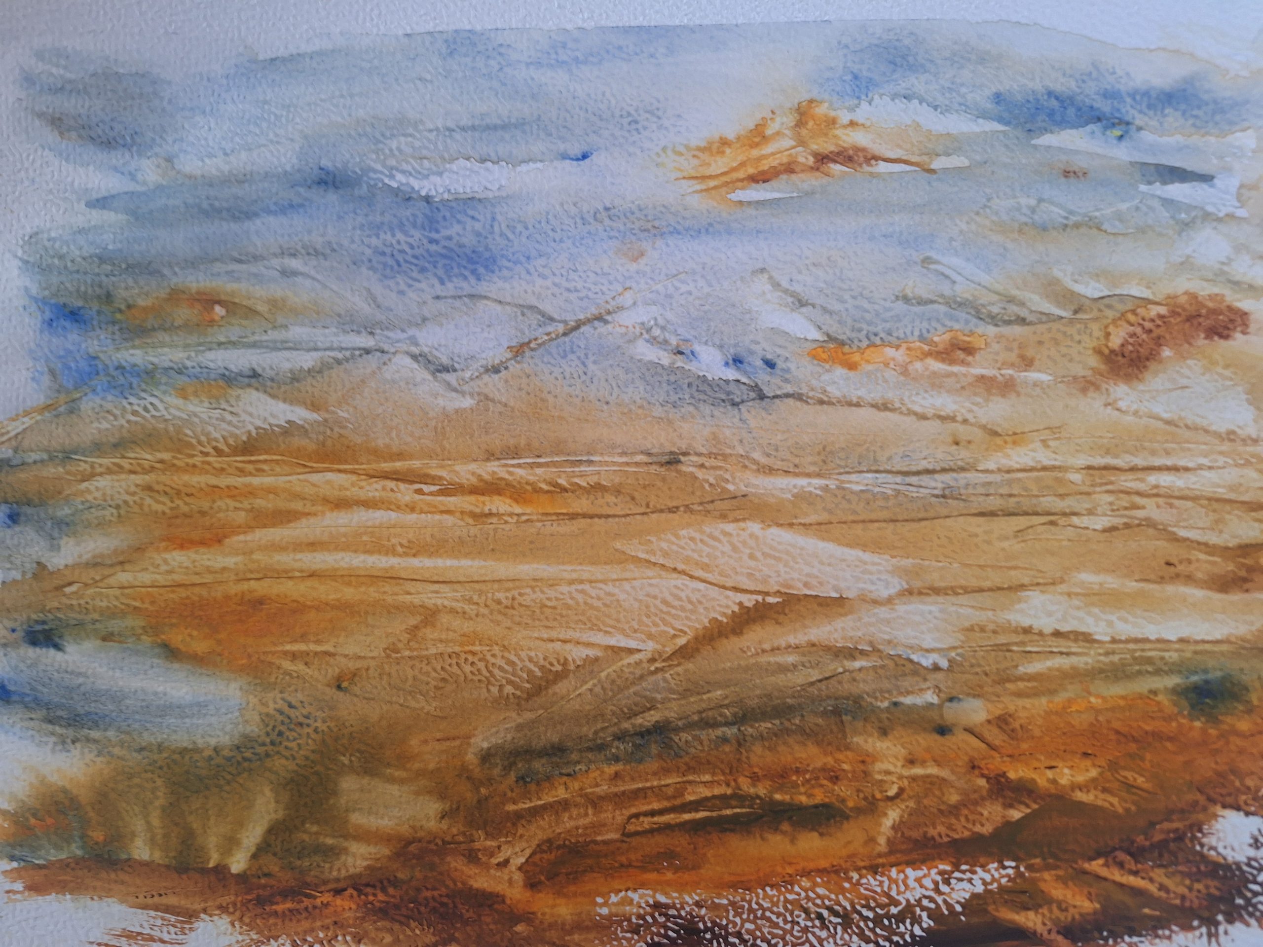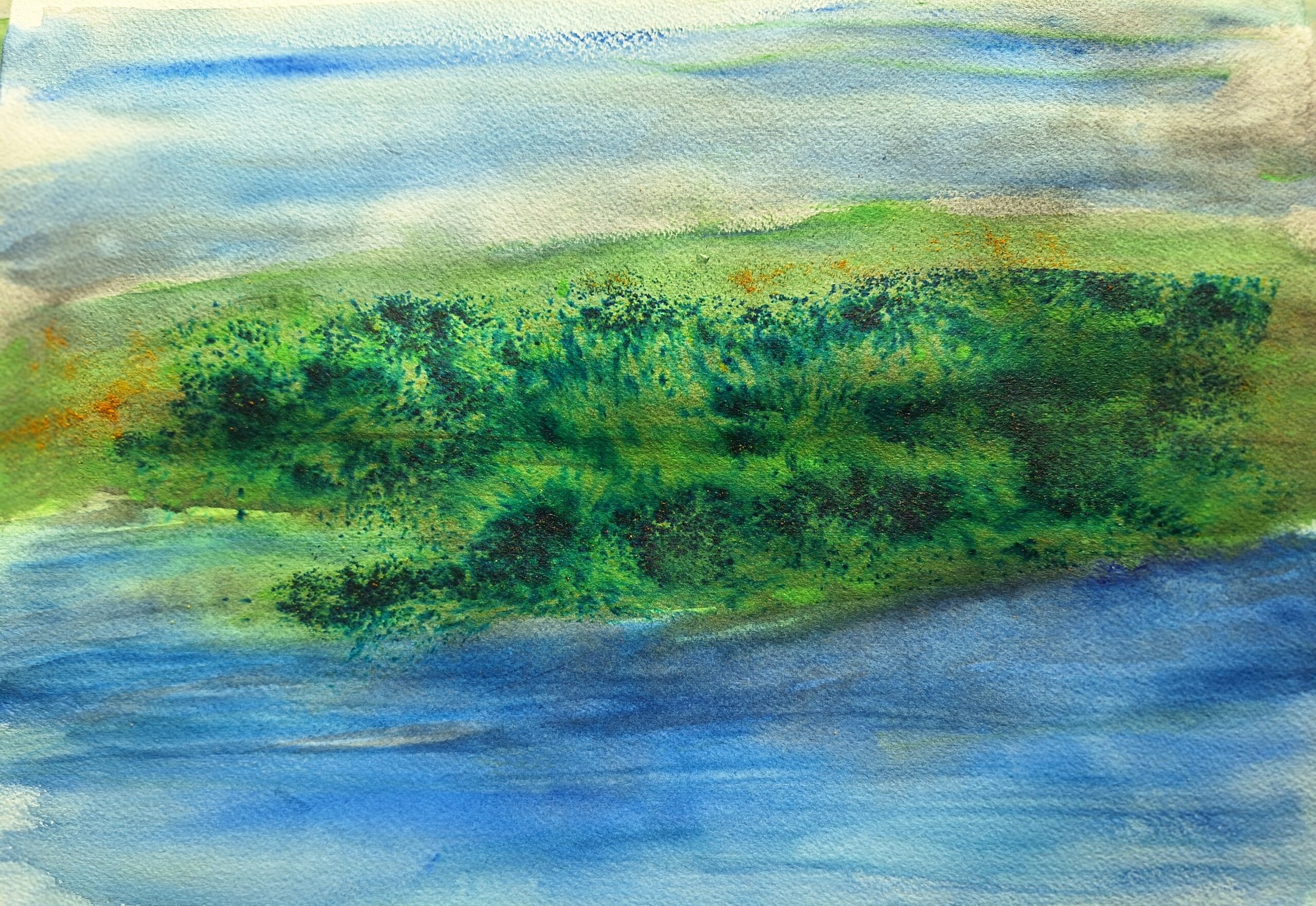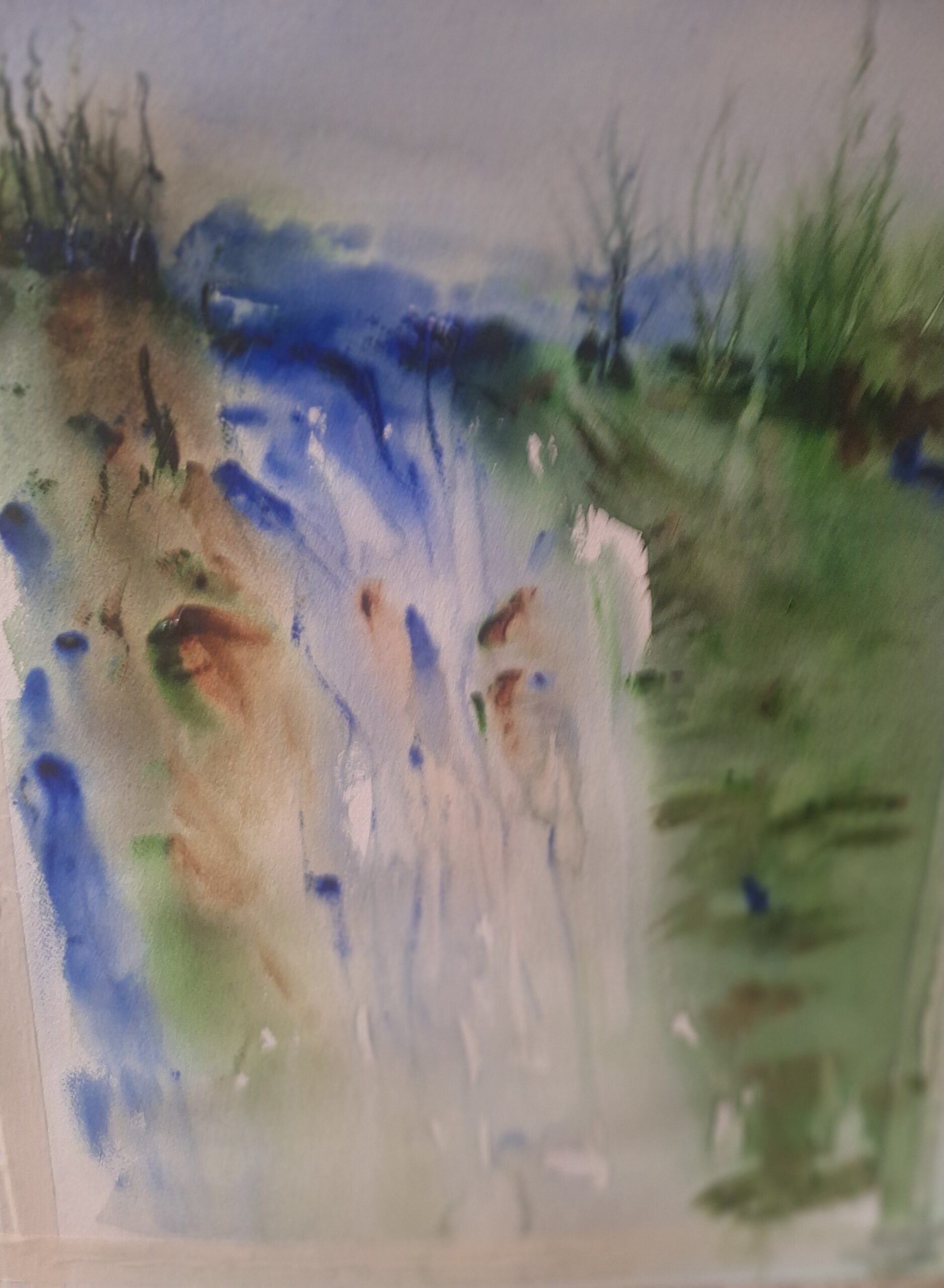 Rather than canvas, these works are created on substantial 180lb fine art paper, chosen for its weight, longevity, and ability to hold nuanced layers of watercolor with exceptional depth. This material allows pigment to settle, breathe, and interact with the surface in a way that preserves subtle transitions and refined detail, offering richness valued by mindful collectors.